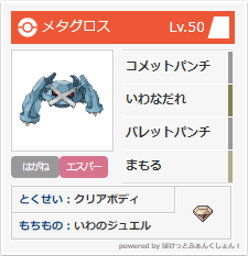 メタグロスも強いですね。メガクチートほどかはともかく、5世代では種族値の高さが頼りになります。