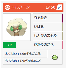 エルフーンは耐性の弱さが少し気になります。フェアリーがないのは痛い。