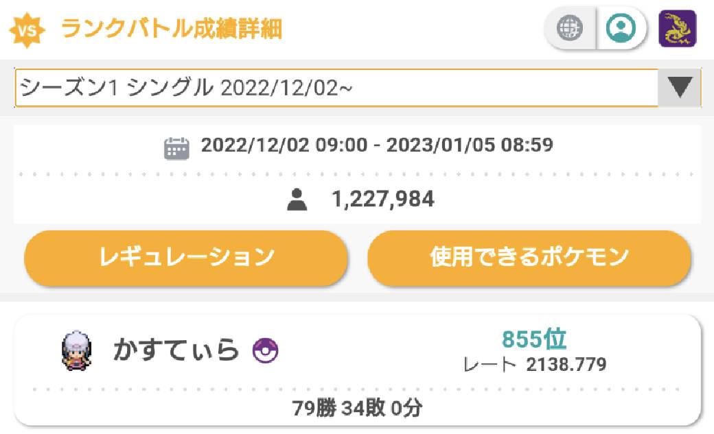 レート2000を目標にしていたけど、剣盾シーズン1の順位から推測すると達成していると思う。やった~(推測で勝手に喜ぶ男)
