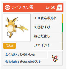それでもライチュウを採用したのは、言うまでもなく避雷針のためです。