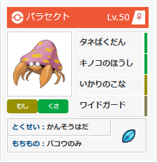 キノコの胞子やワイドガードで、他の2匹とは別軸で圧力をかけるのが仕事。