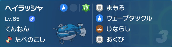 基本選出で行くことも多いですが、序盤の相手の勢いを削ぐために先発ヘイラッシャで入ることもあります。